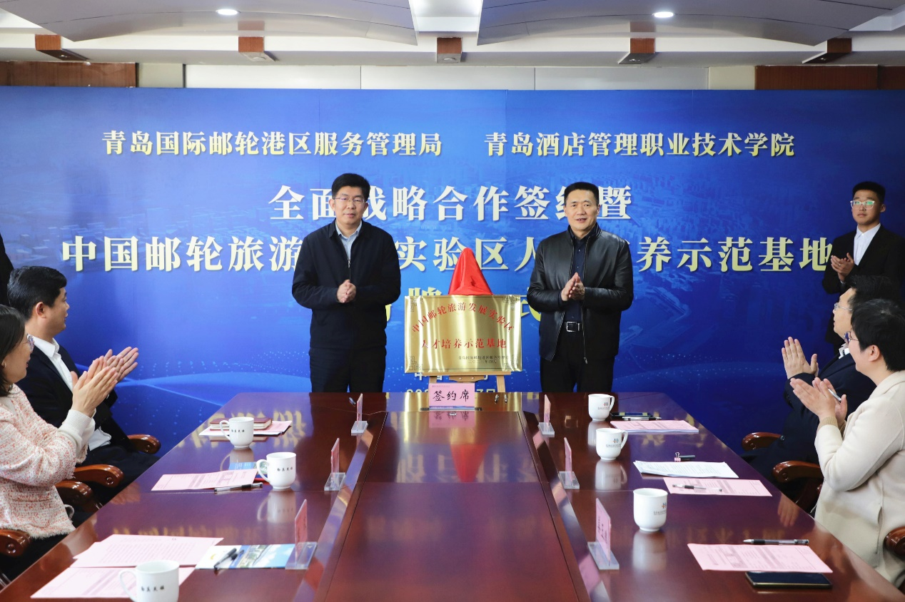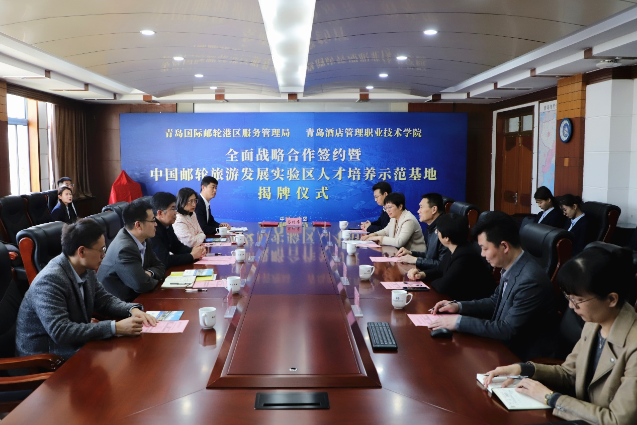 青島酒店學院與青島國際郵輪港區服務管理局舉行全面戰略合作簽約儀式
