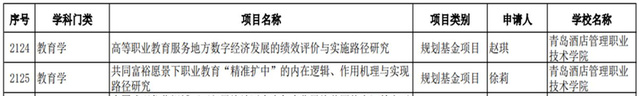 近日,教育部公布2023年度教育部人文社會科學研究一般項目立項名單,青島酒店學院趙琪主持的《高等職業(yè)教育服務地方數字經濟發(fā)展的績效評價與實施路徑研究》和徐莉主持的《共同富裕愿景下職業(yè)教育“精準擴中”的內在邏輯、作用機理與實現路徑研究》2項課題喜獲立項,立項數量位居全國高職院校前列。