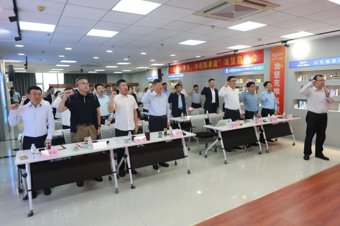 9月27日,福瑞達(dá)召開(kāi)“大干一百天,沖刺四季度”百日攻堅(jiān)誓師大會(huì),全面吹響向年度任務(wù)發(fā)起總攻的沖鋒號(hào)。福瑞達(dá)黨委書(shū)記、董事長(zhǎng)賈慶文出席會(huì)議并講話,總經(jīng)理高鵬飛主持會(huì)議。