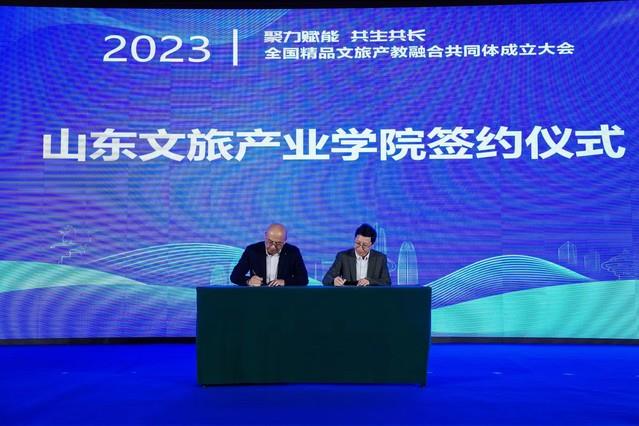 張宗國(guó)代表學(xué)校分別與山東文旅集團(tuán)簽約成立山東文旅產(chǎn)業(yè)學(xué)院,與國(guó)家開放大學(xué)出版?zhèn)髅郊瘓F(tuán)簽約編寫國(guó)內(nèi)首批精品旅游新國(guó)標(biāo)教材。