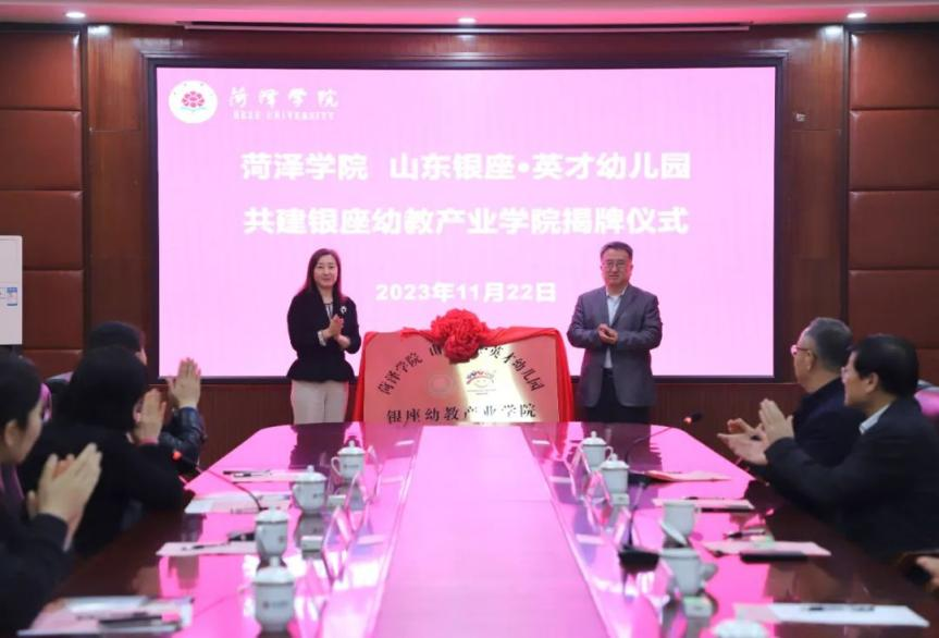 近日,銀座幼教與菏澤學(xué)院合作協(xié)議簽訂儀式舉行。銀座幼教黨委書記、董事長袁霞與菏澤學(xué)院黨委委員、副校長孟令美共同為菏澤學(xué)院銀座幼教產(chǎn)業(yè)學(xué)院揭牌。