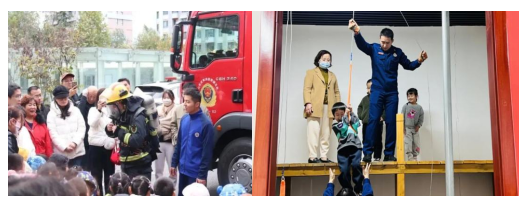 活動中,消防員為大家進(jìn)行了一場全實(shí)景消防安全教育宣傳,大家了解了消防車和各種消防器材的用途及基本操作方法,孩子們充當(dāng)“小小消防員”參與vr模擬救援。此外,老師和孩子們一起制作了消防知識宣傳板,并走進(jìn)社區(qū)進(jìn)行消防知識宣傳。