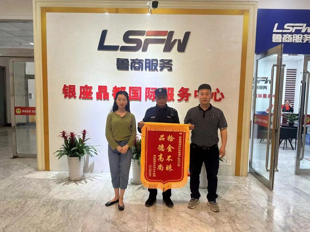 “拾金不昧,品德高尚”,近日,業主馬女士為銀座晶都項目送來錦旗,表達對秩序人員的感激之情。