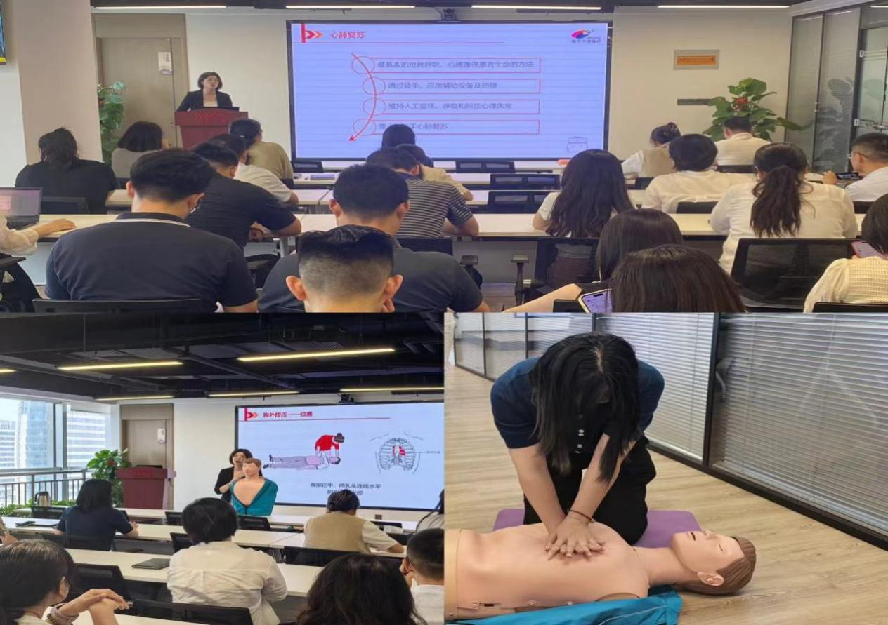 活動現(xiàn)場,工作人員就心肺復(fù)蘇術(shù)、人工呼吸、AED(體外除顫儀)使用等相關(guān)急救知識進(jìn)行了詳細(xì)的講解,在指導(dǎo)練習(xí)環(huán)節(jié)中,工作人員指導(dǎo)職工利用人體模型進(jìn)行了現(xiàn)場心肺復(fù)蘇操作演示。