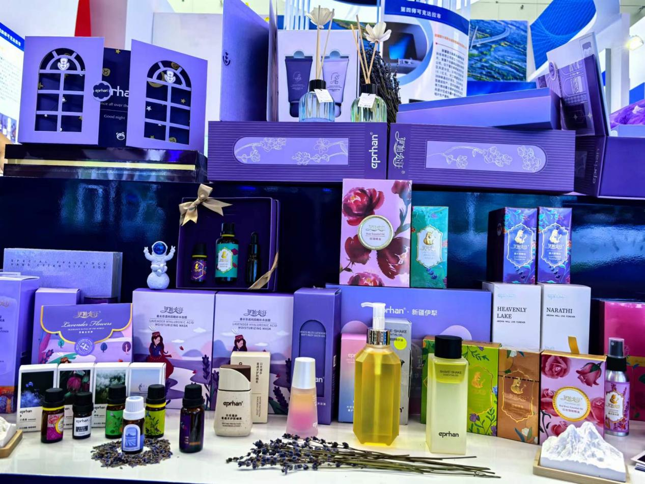 公司展示了在香料領域的創新成果和一系列優質產品,包括最新研發的薰衣草精油、以油養膚、香氛類等系列產品,吸引眾多參觀者和行業專家駐足。產品不僅采用了優質的原料和先進的提取技術,還融入了獨特的設計理念和文化元素,充分展現了伊帕爾汗對消費者需求的深刻解讀。