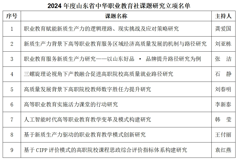 近日,山東省中華職業(yè)教育社發(fā)布了《關(guān)于 2024 年度全省職教社系統(tǒng)課題立項的通知》。山東商職學(xué)院9項課題獲準(zhǔn)立項,課題立項數(shù)量在全省名列前茅。