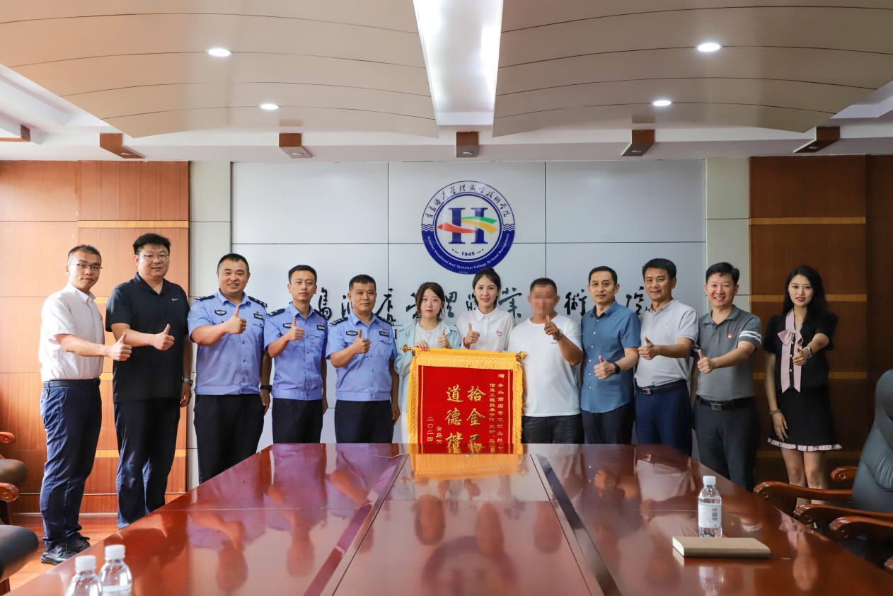 近日,青島申先生向青島酒店管理職院2023級學生王舒、馬玉丹贈送了“拾金不昧 道德楷模”的錦旗,感謝兩位同學拾金不昧的高尚品德。