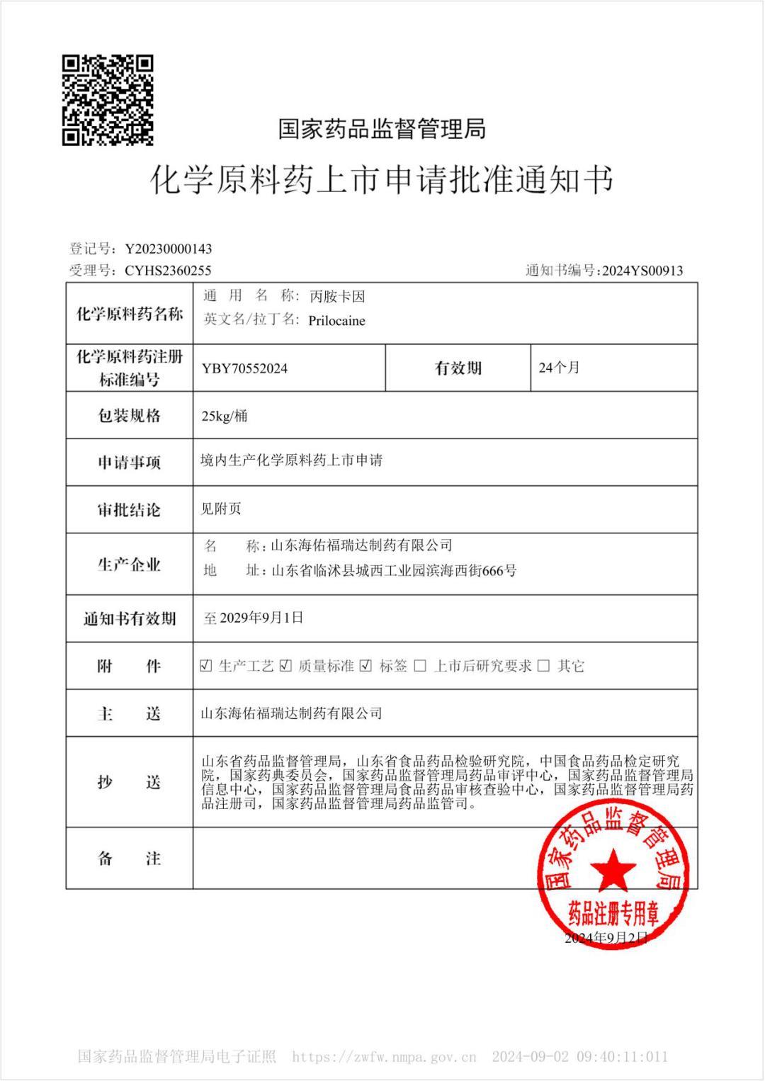 近日,經國家藥品監督管理局藥品審評中心的專業審評,由魯商集團所屬省藥科院主持研發、海佑福瑞達生產的丙胺卡因化學原料藥獲得上市申請批準,標志著魯商集團產業協同發展取得又一重要成果。
