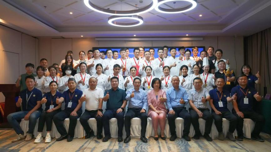 ▲趙小璇(右四)、孫子桓(左三)獲得第二十五屆全國焙烤職業(yè)技能競賽山東預(yù)選賽金獎
