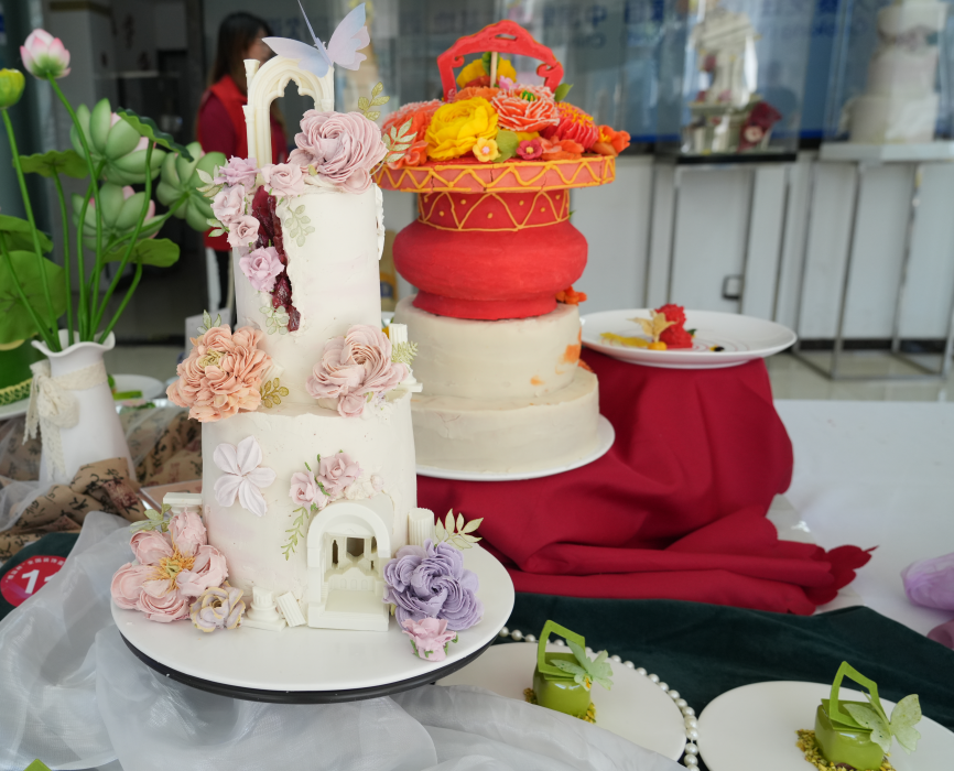 本次比賽設(shè)個人賽和團體賽,包括裝飾蛋糕技術(shù)比賽、月餅技術(shù)比賽和面包技術(shù)比賽三個項目。比賽中,參賽選手文明參賽,規(guī)范操作,精益求精,展現(xiàn)了良好的精神風貌和扎實的專業(yè)技能。賽場上香氣四溢,選手們將食材與谷類面包巧妙融合,制作出一款款形態(tài)各異、各具特色的烘焙產(chǎn)品,盡情展現(xiàn)著精湛技藝和無限創(chuàng)意。經(jīng)過激烈角逐,山東城市服務(wù)職院參賽教師趙小璇、孫子桓分別獲得第二十五屆全國焙烤職業(yè)技能競賽山東預(yù)選賽裝飾蛋糕項目金獎、面包制作項目金獎,同時,趙小璇獲得第三屆全省焙烤職業(yè)技能競賽裝飾蛋糕項目金獎,參賽學(xué)生梁恒面包制作項目銅獎,參賽學(xué)生石濤、葛春輝、張書笛獲得裝飾蛋糕項目優(yōu)秀獎。