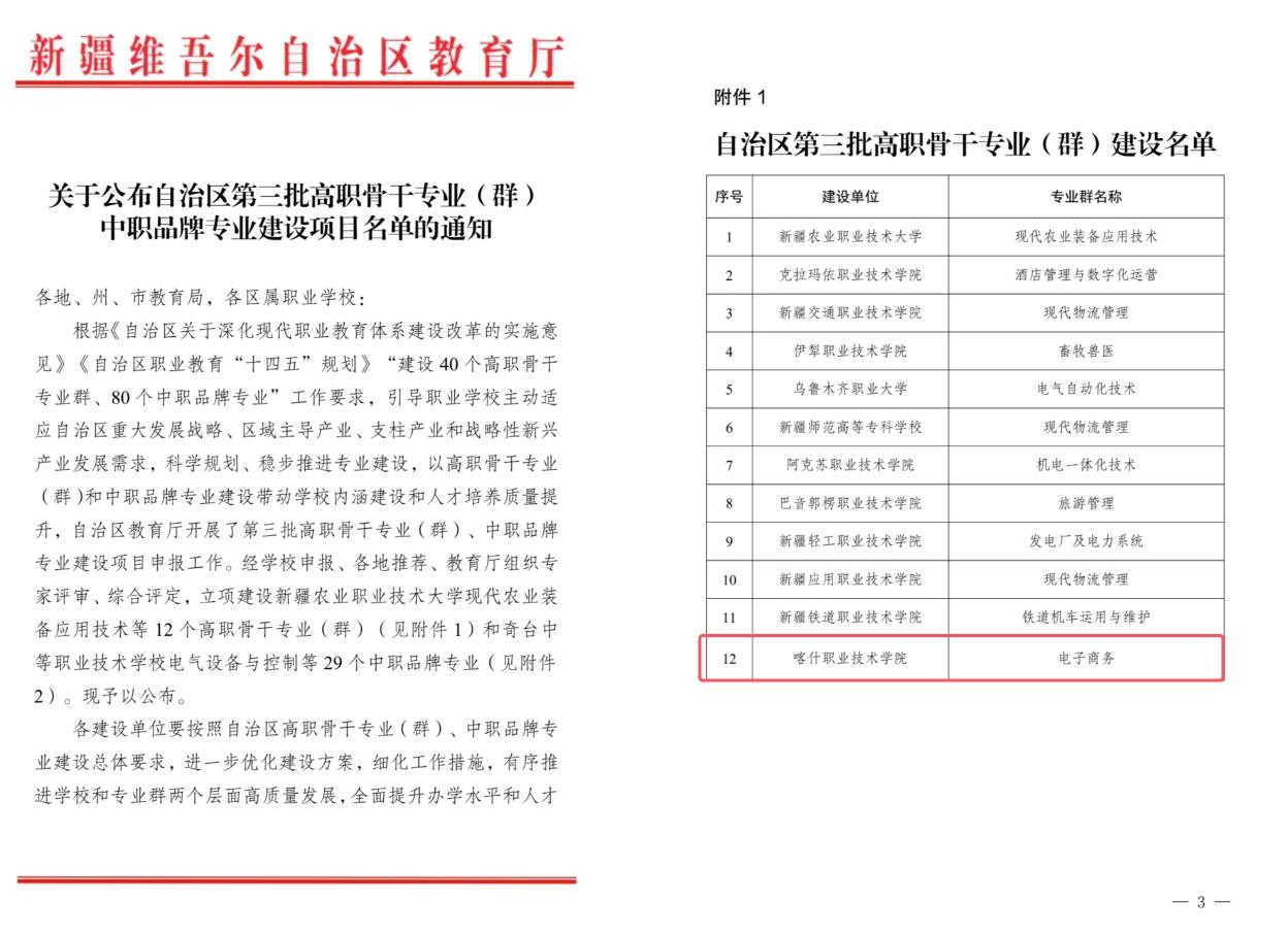近日,新疆維吾爾自治區(qū)教育廳公布了自治區(qū)第三批高職骨干專業(yè)(群)及中職品牌專業(yè)建設(shè)項目的獲獎名單,由山東商職學(xué)院托管的喀什職業(yè)技術(shù)學(xué)院商貿(mào)流通工程技術(shù)學(xué)院提交的“電子商務(wù)專業(yè)群”項目,成功獲得立項。