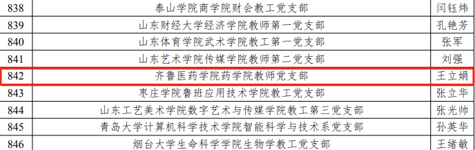 近日,教育部辦公廳公布全國高?!半p帶頭人”教師黨支部書記“強國行”專項行動團隊名單,經(jīng)學校推薦、專家評審、省委教育工委委員會議審議等環(huán)節(jié),齊魯醫(yī)藥學院藥學院教師黨支部入選全國高校“雙帶頭人”教師黨支部書記“強國行”專項行動團隊。