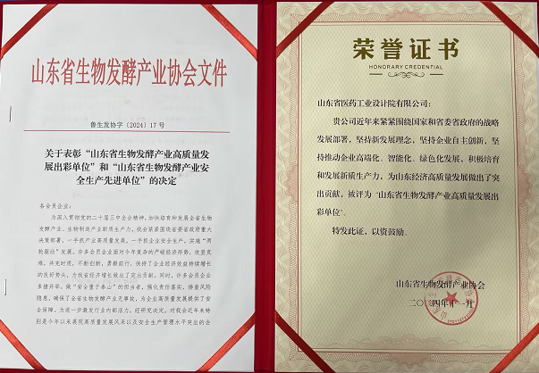 省醫工院榮獲“山東省生物發酵產業高質量發展出彩單位”稱號