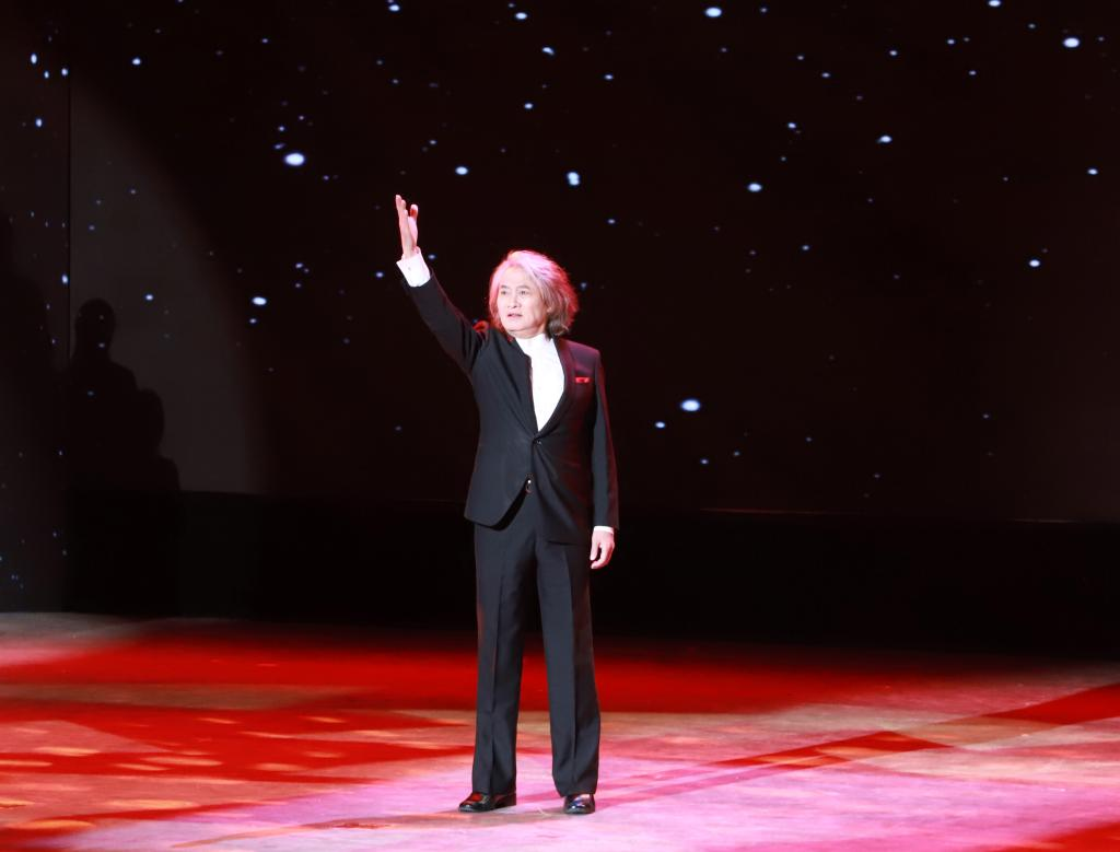 正式演出中,徐濤領誦,學校42名師生合誦,同臺演繹了《焦裕祿之歌》。徐濤沉穩大氣的臺風、富有感染力的嗓音、由內而生的真摯情感直擊人心,現場演出效果震撼,藝術感染力極強,呈現了一場精美絕倫的視聽盛宴。