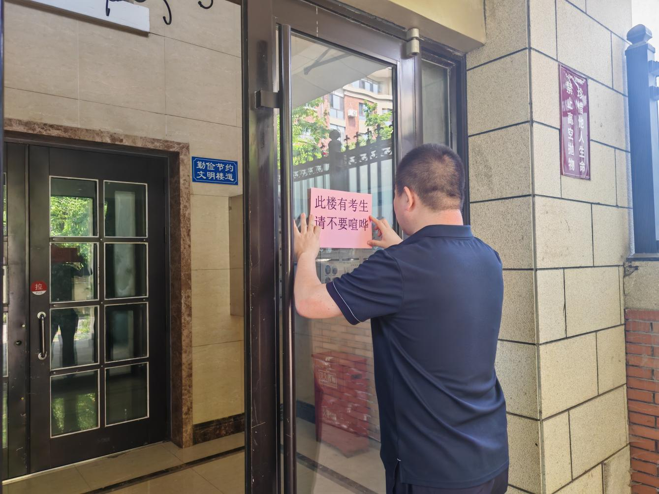 此外,工作人員還手寫了“加油便利貼”:在單元門、信報箱等考生必經之處,張貼“筆鋒所至皆心之所向”“你的努力,藏著星光”等暖心話語,為考生送去祝福。