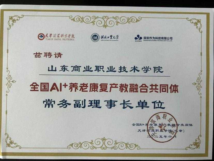 AI在魯商 | 山東商職學院當選全國AI+養老康復產教融合共同體常務副理事長單位