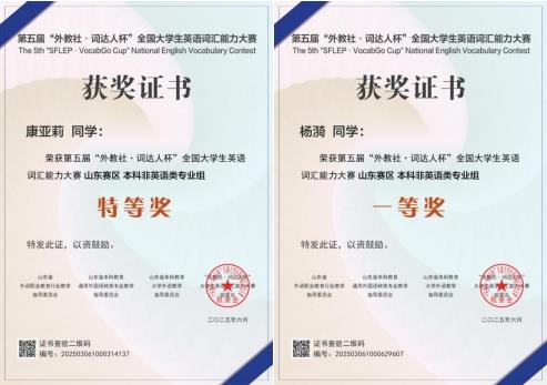 齊魯醫藥學院學子在2025第五屆“外教社·詞達人杯”全國大學生英語詞匯能力大賽中斬獲佳績