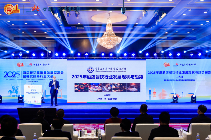 青島酒店管理職院受邀參加“2025酒店餐飲高質量發展交流會暨餐飲服務行業大會”并作開場報告