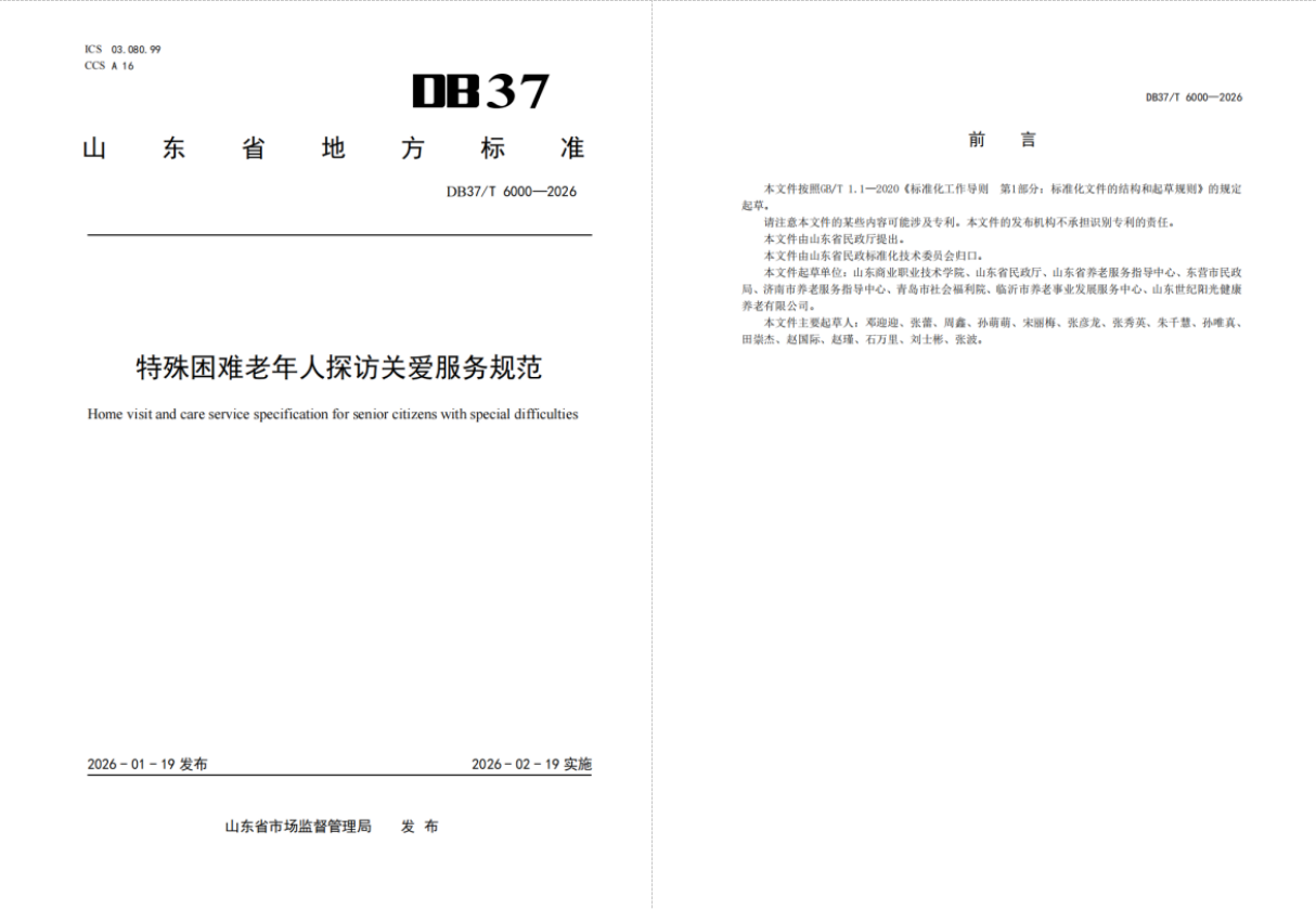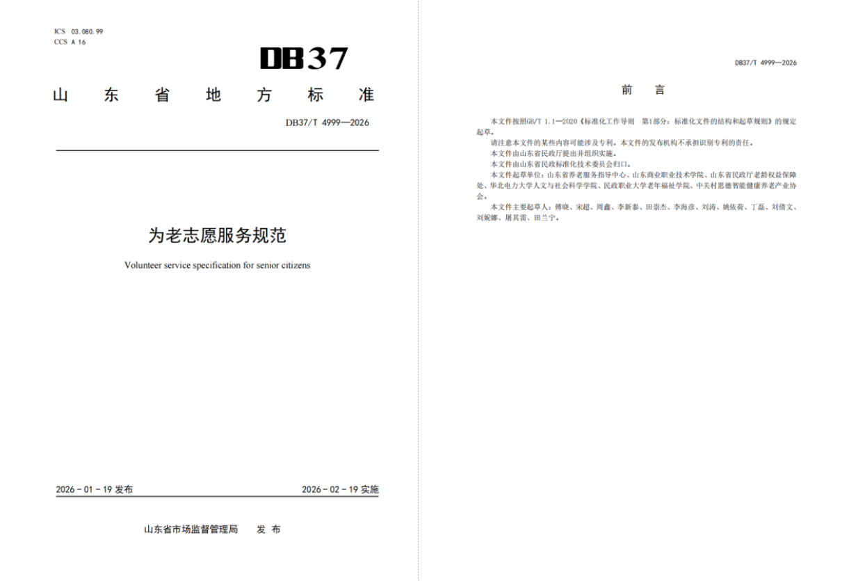 近日,由山東商職學院參與制定的《為老志愿服務規范》《特殊困難老年人探訪關愛服務規范》兩項山東省地方標準獲批發布。